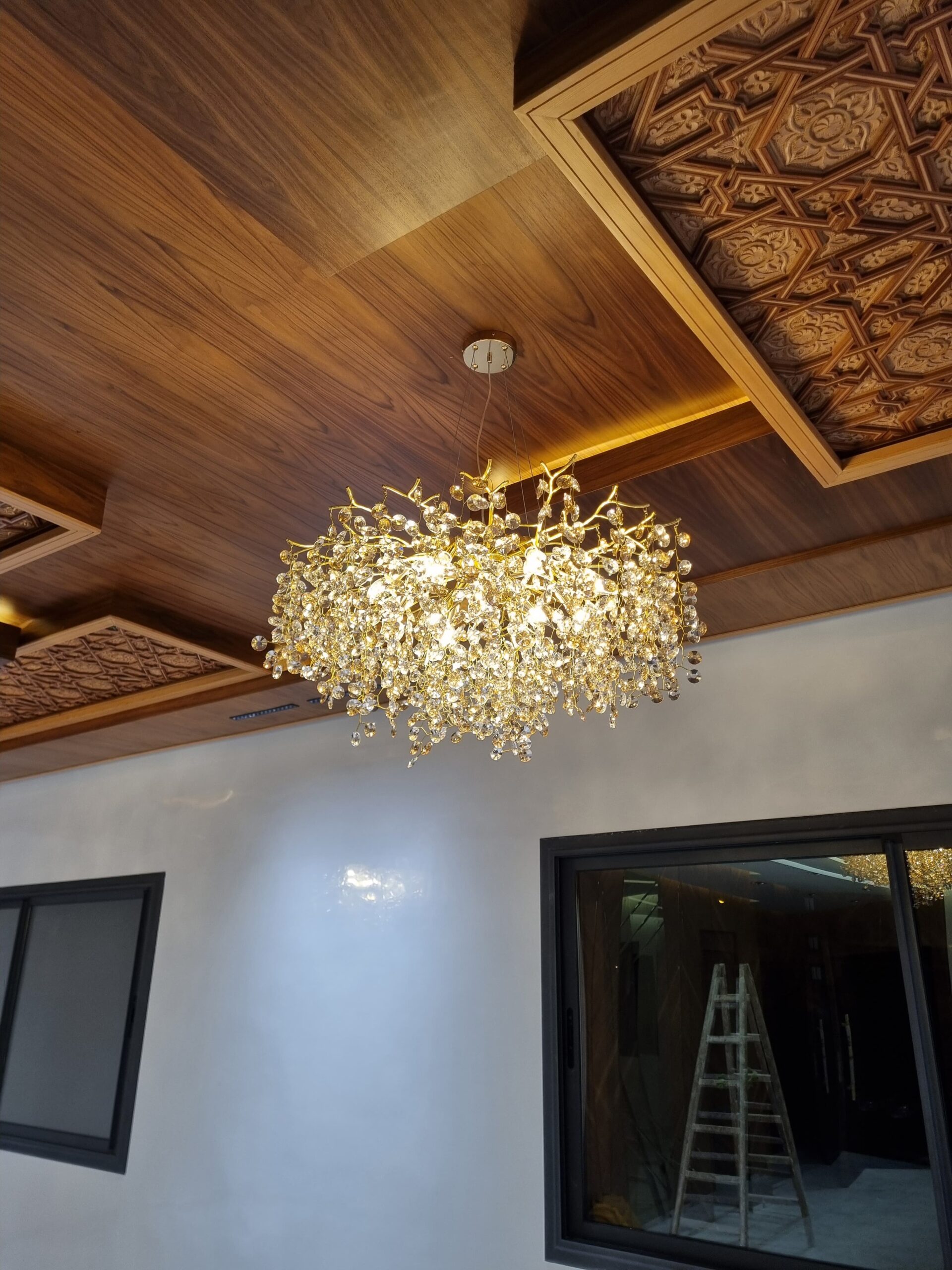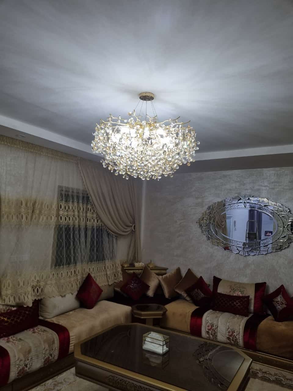 Grâce à son design équilibré – 50% Beldi et 50% moderne – il s’intègre avec une grâce infinie, qu’il s’agisse de rehausser une ambiance chaleureuse et classique ou d’ajouter une note sophistiquée à un espace plus contemporain. Sa finition impeccable garantit une diffusion de lumière éclatante, créant une atmosphère glamour et accueillante, et faisant de ce lustre la pièce maîtresse idéale pour tout salon.