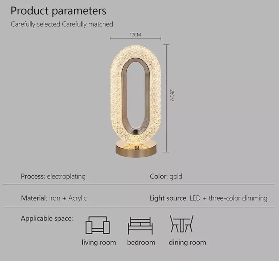 Fabriquée avec des matériaux de haute qualité comme le fer et l’acrylique, elle est parfaite comme veilleuse de luxe, lampe de bureau élégante, ou lumière d’ambiance pour le salon, la chambre, la salle à manger, ou même les hôtels et restaurants.