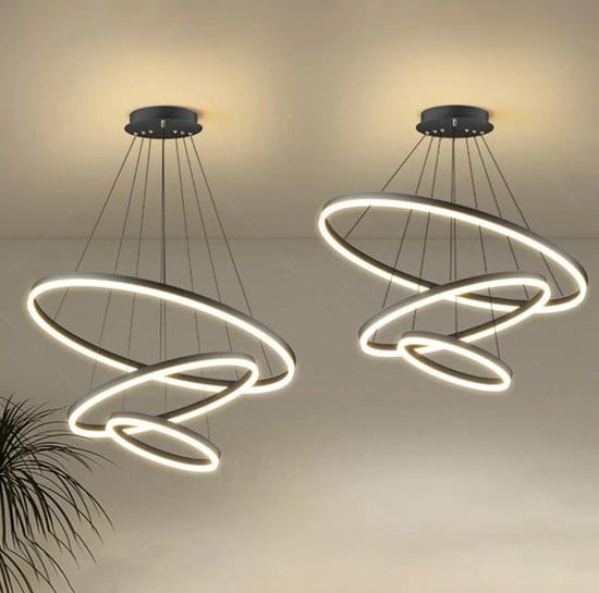 - Design : 3 cercles LED entrelacés, style moderne et royal