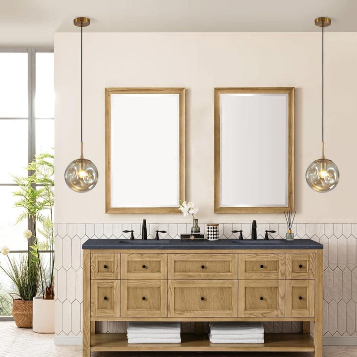 - Matériaux : Laiton brossé (structure) et Verre fumé irrégulier (globes)